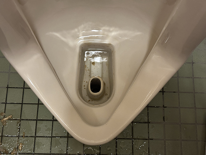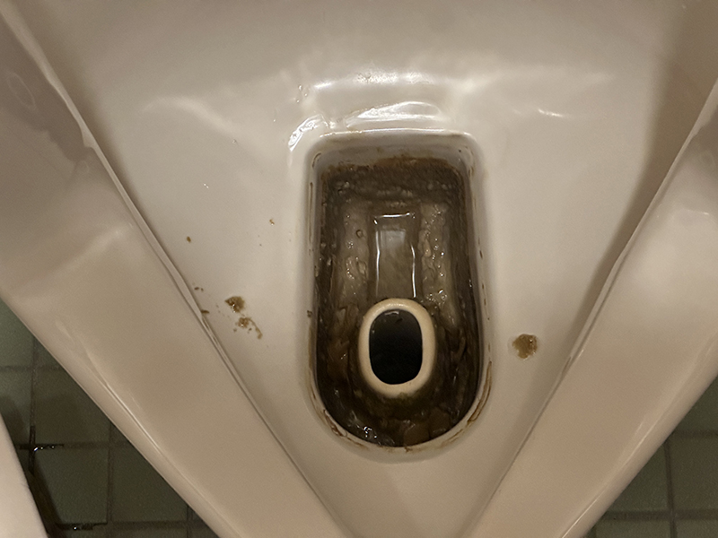 蕎麦の名店の男子トイレにて、男子便器の尿石除去