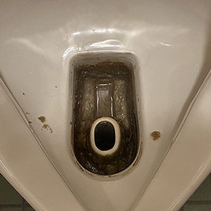 ステンレス製ゲートにアルコールスプレー使用による白い汚れが発生 |